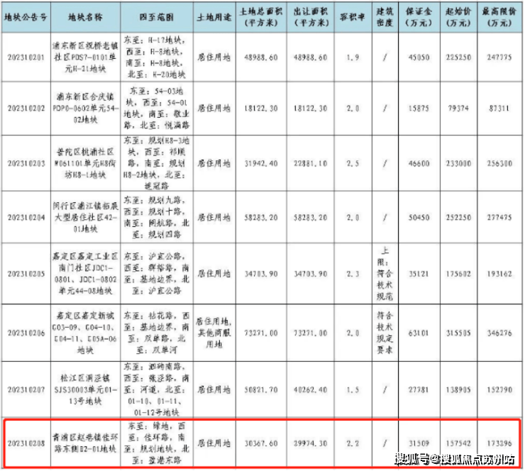 2022年12月第四批土拍,国贸&嘉悦投资竞得青浦区赵巷镇佳恒南侧B3A-01、B3A-02、B3B-01地块,溢价率8。96%,总价约33。08亿拿下该幅打包地块,成交楼板价为24484元/㎡,房地联动价54500元/㎡!